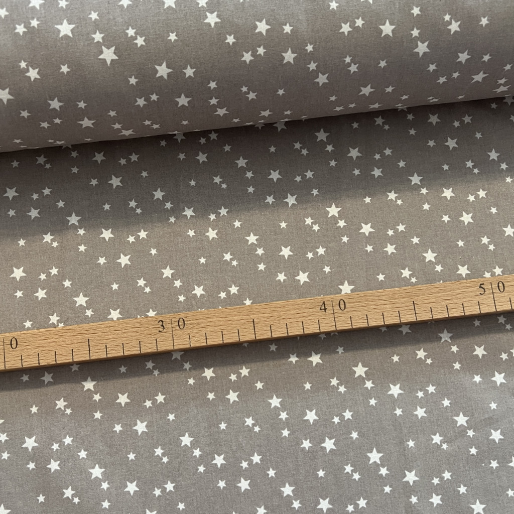 0,48 m EGYBEN KÉRHETŐ Szürke alapon fehér csillagos 160 cm sz. pamutvászon (KA)