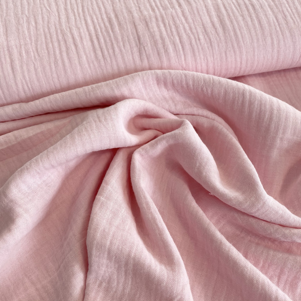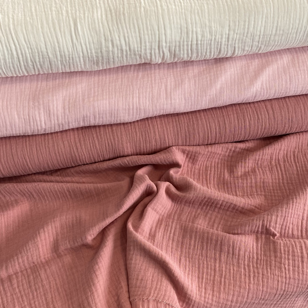 Dupla géz anyagaink 100% pamut összetételűek (140 cm szélesek). Az anyag nagyon puha és bőrbarát, hasonló a tapintása, mint a tetra pelenkának, csak ez még tömörebb és puhább. Vasalást nem igényel, mert alapból kicsit gyűrőttes hatása van. Mosás után könnyen szárad. Mosását max. 30-40 fokon ajánljuk, hogy ne menjen össze annyira. Akár 90 fokot is bír gond nélkül, ha nyálkendőnek használjuk, de ebben az esetben 10-15% zsugorodással kell számolni.
