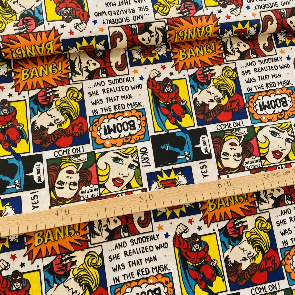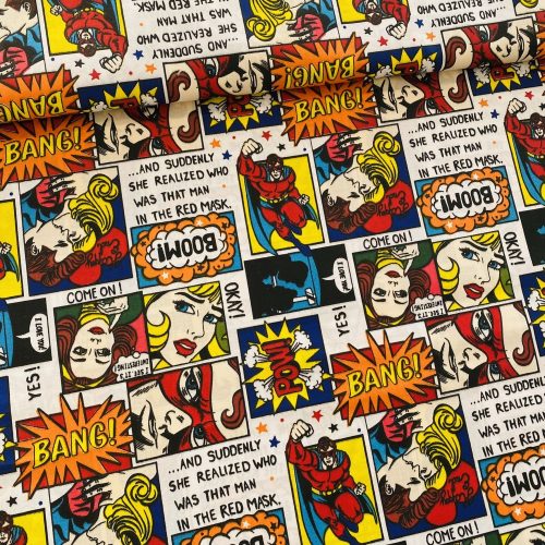 0,78 m EGYBEN KÉRHETŐ KIÁRUSÍTÁS: Színes BANG! képregényes pamutvászon