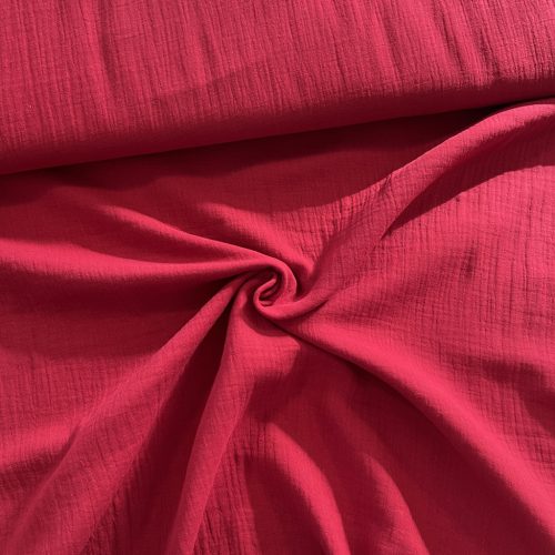 Dupla géz anyagaink 100% pamut összetételűek (140 cm szélesek). Az anyag nagyon puha és bőrbarát, hasonló a tapintása, mint a tetra pelenkának, csak ez még tömörebb és puhább. Vasalást nem igényel, mert alapból kicsit gyűrőttes hatása van. Mosás után könnyen szárad. Mosását max. 30-40 fokon ajánljuk, hogy ne menjen össze annyira. Akár 90 fokot is bír gond nélkül, ha nyálkendőnek használjuk, de ebben az esetben 10-15% zsugorodással kell számolni.