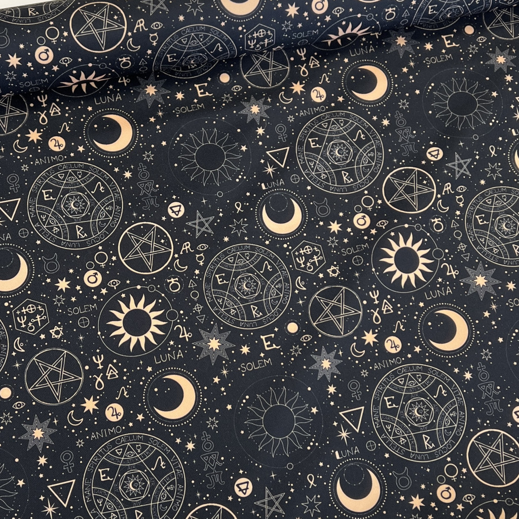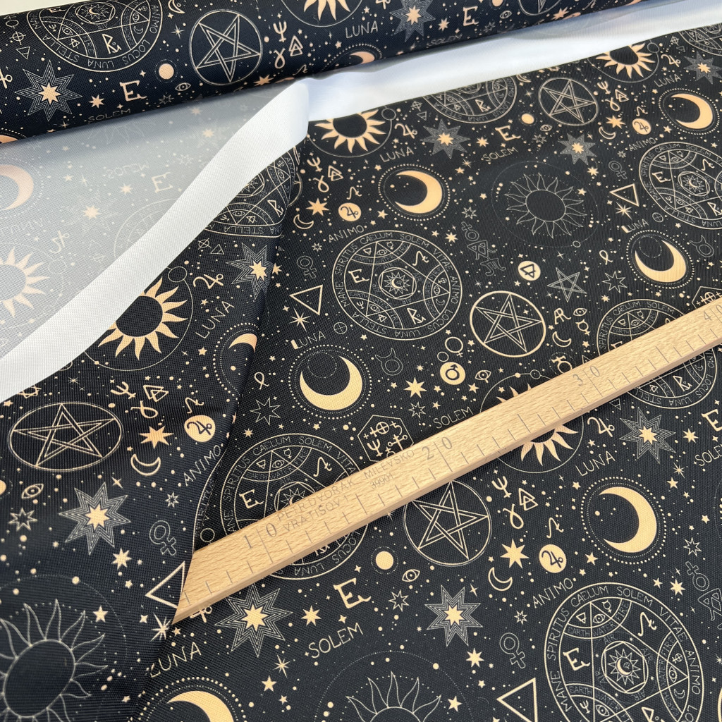 Designer vízálló szövet: Fekete alapon asztrológia mintás