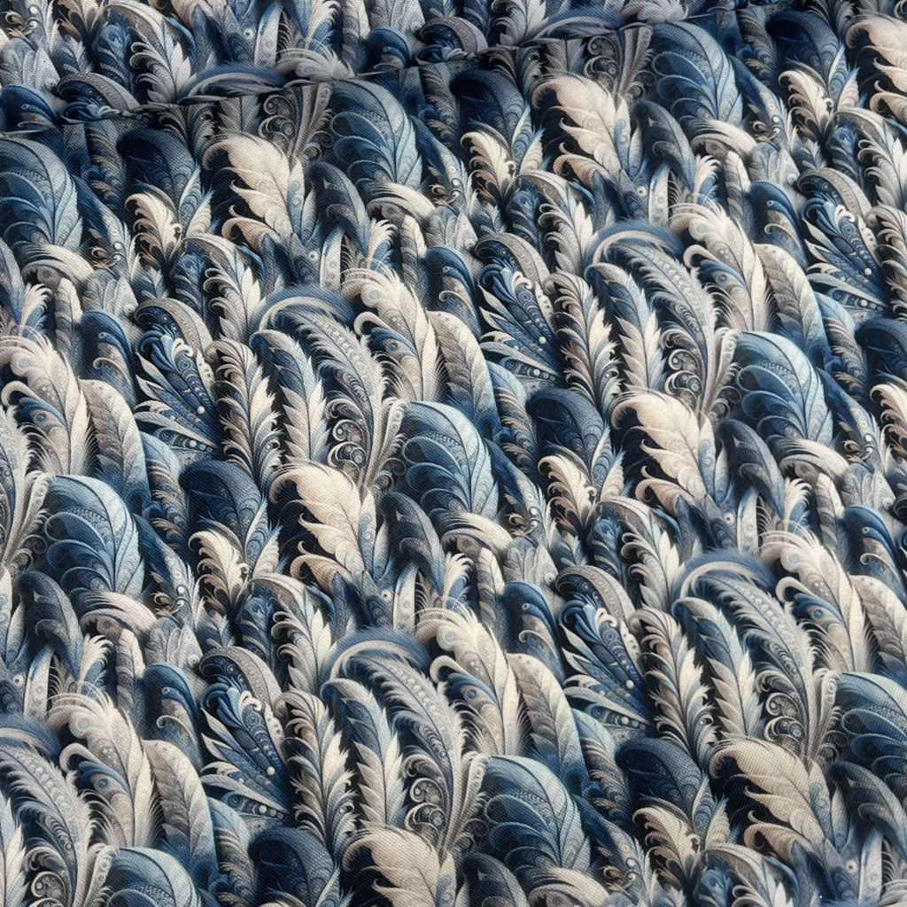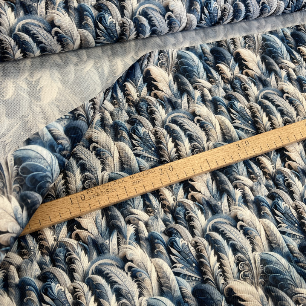 Designer vízálló szövet: Kék-fehér tollas