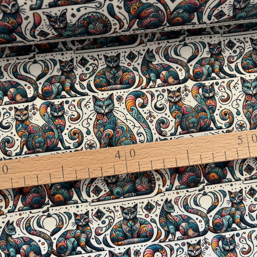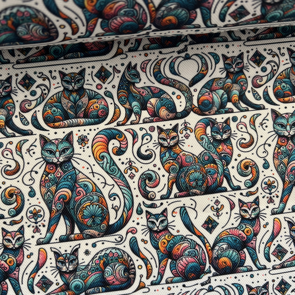 Designer vízálló szövet: Színes absztrakt cicás (A)