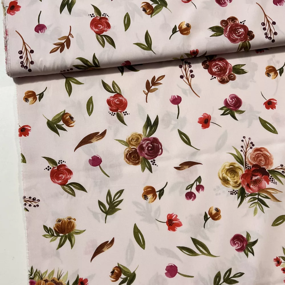 Digitális pamutszatén: Nagyon halvány rózsaszínes a. rózsacsokros