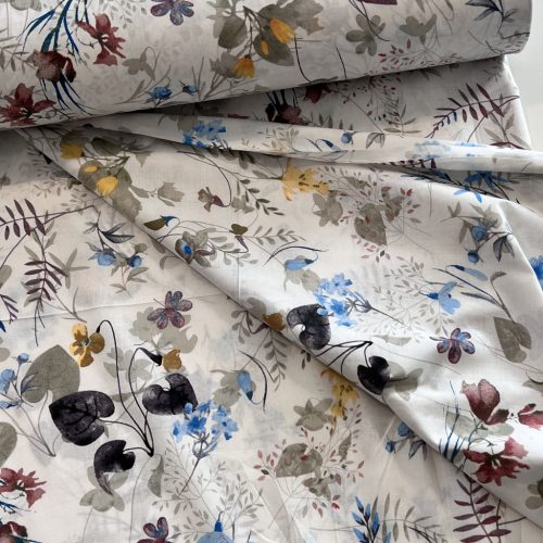 Fehér a. kék-sárga virágos 220 cm sz. pamutvászon (KA)