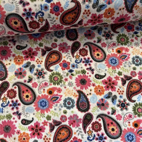 Fehér a. színes mandala-pillangó-virág pamutvászon