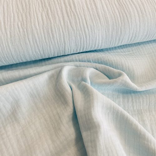 Dupla géz anyagaink 100% pamut összetételűek (140 cm szélesek). Az anyag nagyon puha és bőrbarát, hasonló a tapintása, mint a tetra pelenkának, csak ez még tömörebb és puhább. Vasalást nem igényel, mert alapból kicsit gyűrőttes hatása van. Mosás után könnyen szárad. Mosását max. 30-40 fokon ajánljuk, hogy ne menjen össze annyira. Akár 90 fokot is bír gond nélkül, ha nyálkendőnek használjuk, de ebben az esetben 10-15% zsugorodással kell számolni.