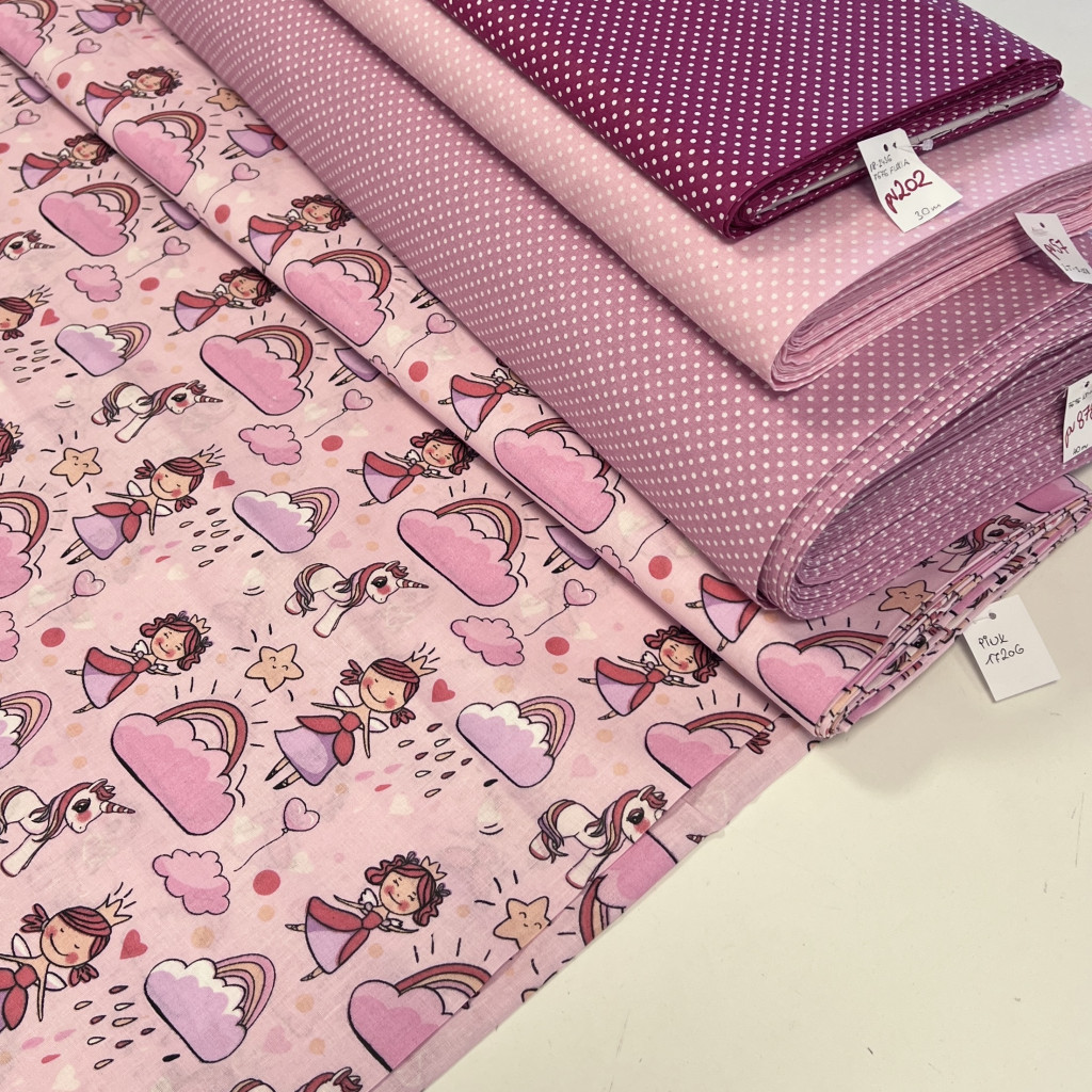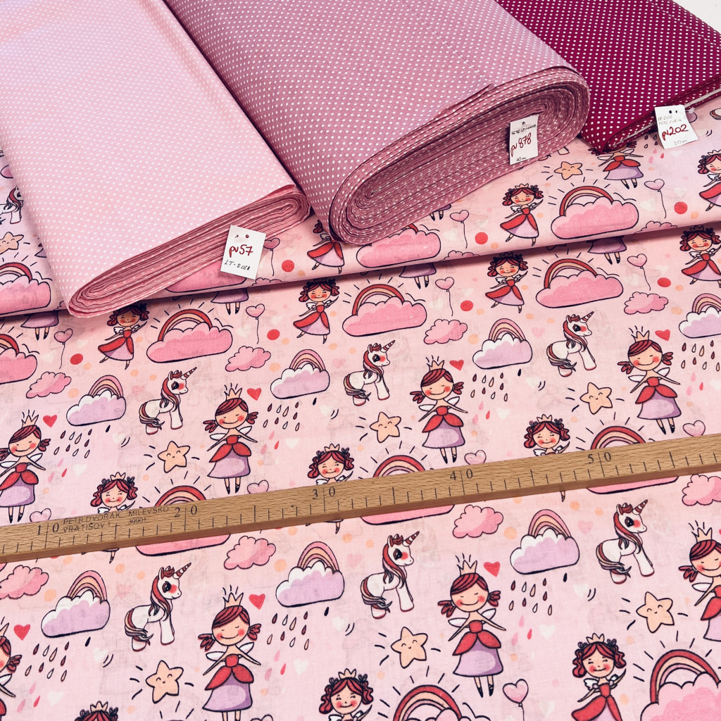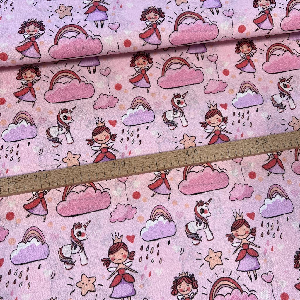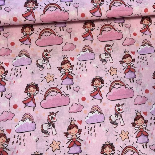 Rózsaszín királylányos-unikornisos pamutvászon