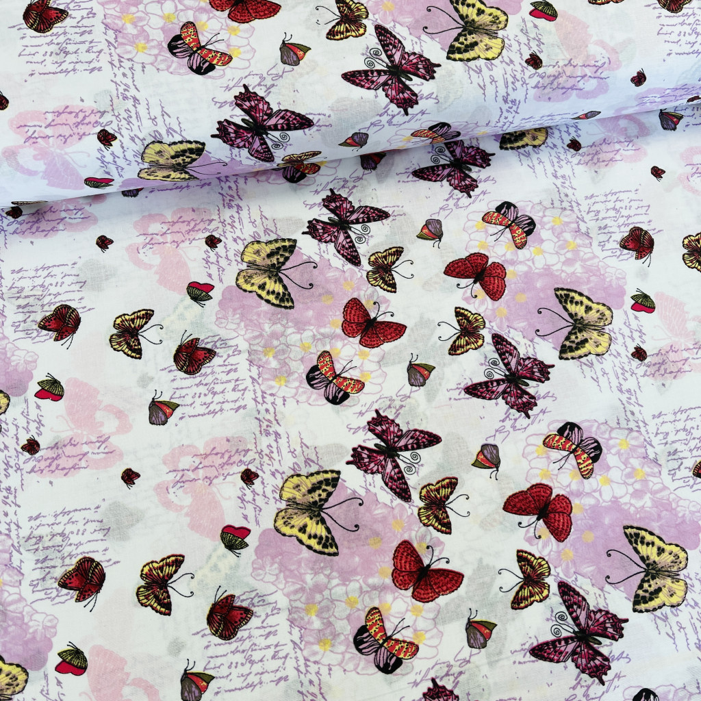 Dusty rose-színes pillangós pamutvászon