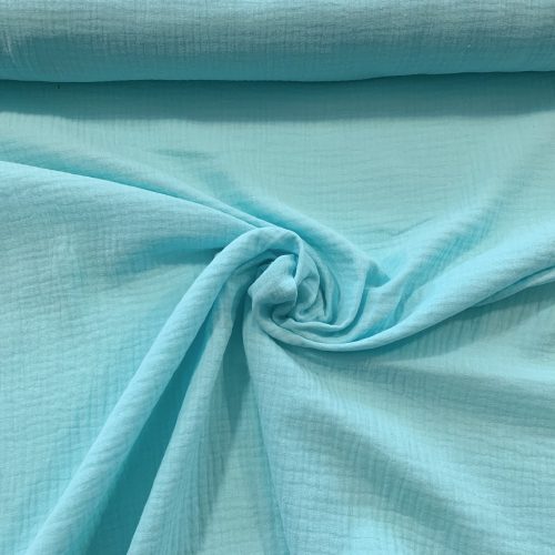 Dupla géz anyagaink 100% pamut összetételűek (140 cm szélesek). Az anyag nagyon puha és bőrbarát, hasonló a tapintása, mint a tetra pelenkának, csak ez még tömörebb és puhább. Vasalást nem igényel, mert alapból kicsit gyűrőttes hatása van. Mosás után könnyen szárad. Mosását max. 30-40 fokon ajánljuk, hogy ne menjen össze annyira. Akár 90 fokot is bír gond nélkül, ha nyálkendőnek használjuk, de ebben az esetben 10-15% zsugorodással kell számolni.