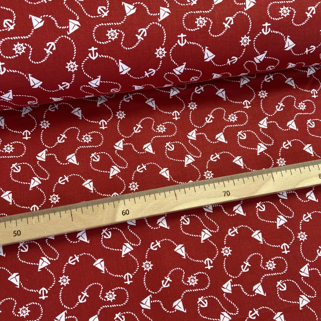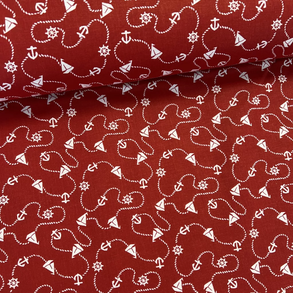 Piros alapon kishajós-kormánykerekes pamutvászon