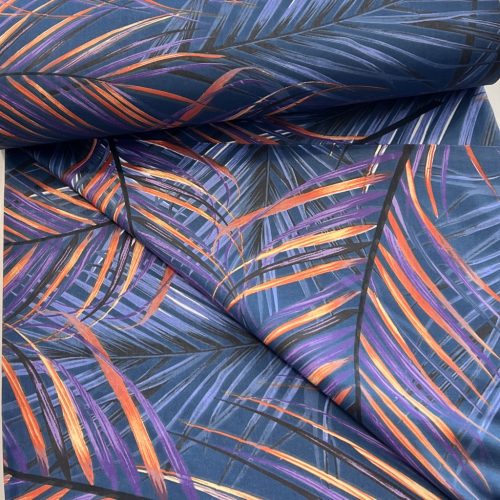 Sötétkék a. narancs-lila pálmaleveles 220 cm sz. pamutvászon (KA)