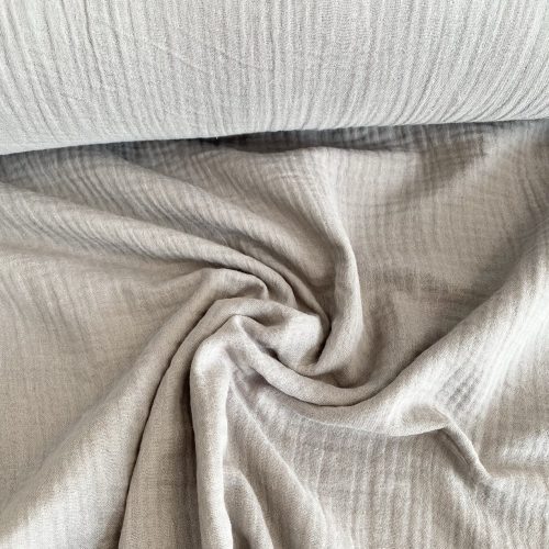 Dupla géz anyagaink 100% pamut összetételűek (140 cm szélesek). Az anyag nagyon puha és bőrbarát, hasonló a tapintása, mint a tetra pelenkának, csak ez még tömörebb és puhább. Vasalást nem igényel, mert alapból kicsit gyűrőttes hatása van. Mosás után könnyen szárad. Mosását max. 30-40 fokon ajánljuk, hogy ne menjen össze annyira. Akár 90 fokot is bír gond nélkül, ha nyálkendőnek használjuk, de ebben az esetben 10-15% zsugorodással kell számolni.